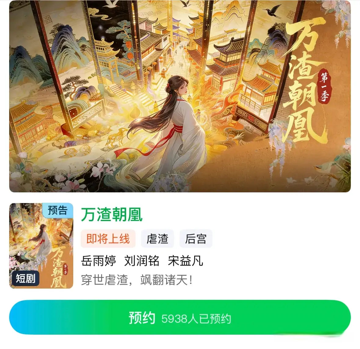 岳雨婷、刘润铭、宋益凡主演的古装漫改短剧《万渣朝凰》已于3月14日正式启动开机拍摄!
